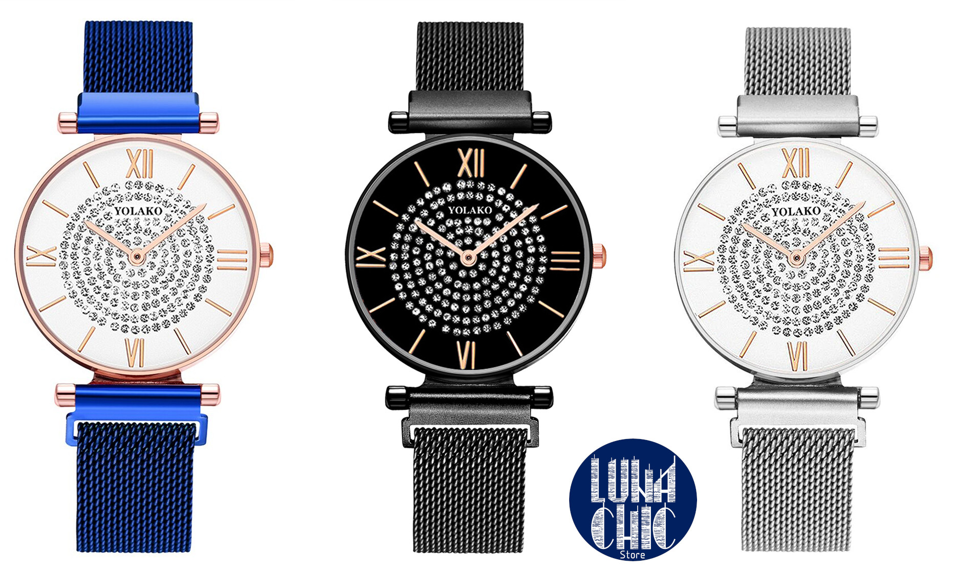 Reloj Femenino Magnetico con Cristales en Acero Inoxidable
